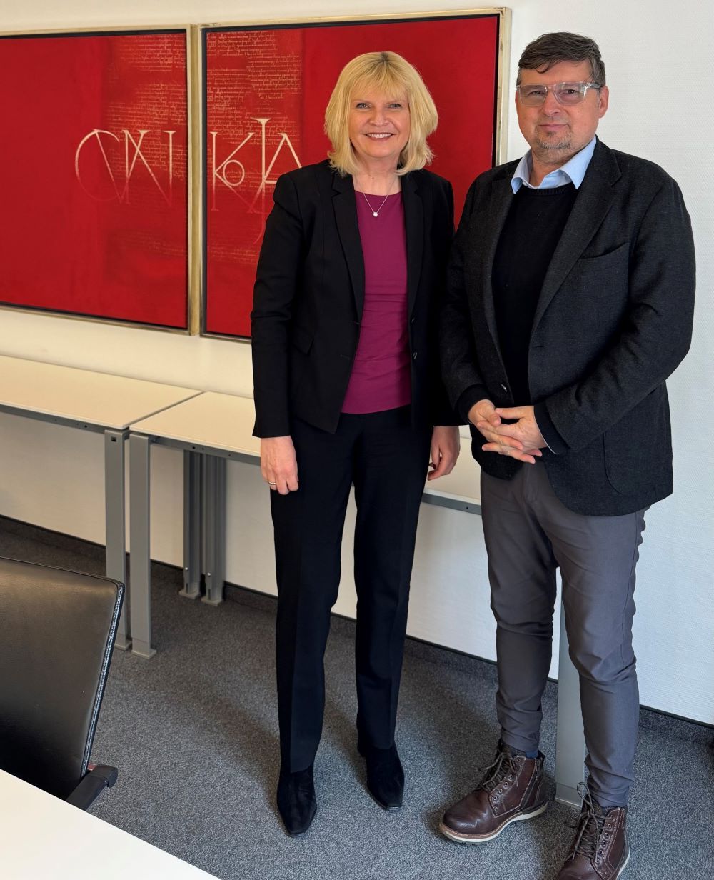 Produktive Austausch zwischen Dr. Wolfgang Ritter, Vorsitzender des Bayerischen Hausärzteverbandes, der Vorstandsvorsitzenden des Medizinischen Dienstes Bayern Prof. Dr. Claudia Wöhler.