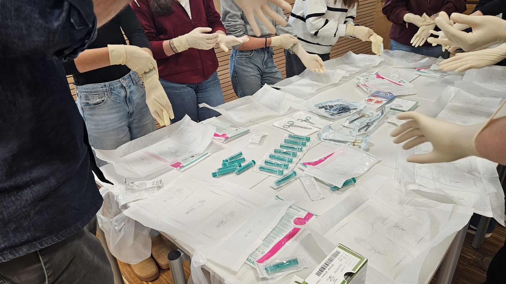 Neben dem sterilen Anziehen und Hände desinfizieren ging es um Prick-Tests zur Allergiediagnostik, Blutentnahme und das Anschließen einer Infusion, Fäden ziehenund Impfen, Blutdruck messen und Urindiagnostik im Rahmen eines Schwangerschaftstests.