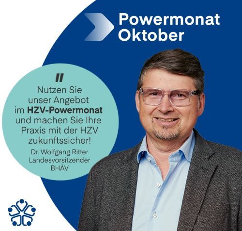 Extra-Schub für die HZV: Das war auch das Ziel des ersten HZV-Powermonats Oktober. Dahinter verbirgt sich ein bundesweit konzertierter Einschreibemonat unter dem Motto „Die HZV stärkt Praxen und Patienten“. Der Bayerische Hausärzteverband unterstützte mit vielen neuen Materialien und kostenlosen Online-Schulungen zur HZV und zieht ein positives Resümee. Auch bei den Praxisteams kam der HZV-Powermonat überwiegend gut an, wie eine Umfrage des Bayerischen Hausärzteverbandes zeigte. Fazit: Auch im kommenden Jahr soll es wieder einen HZV-Powermonat geben.