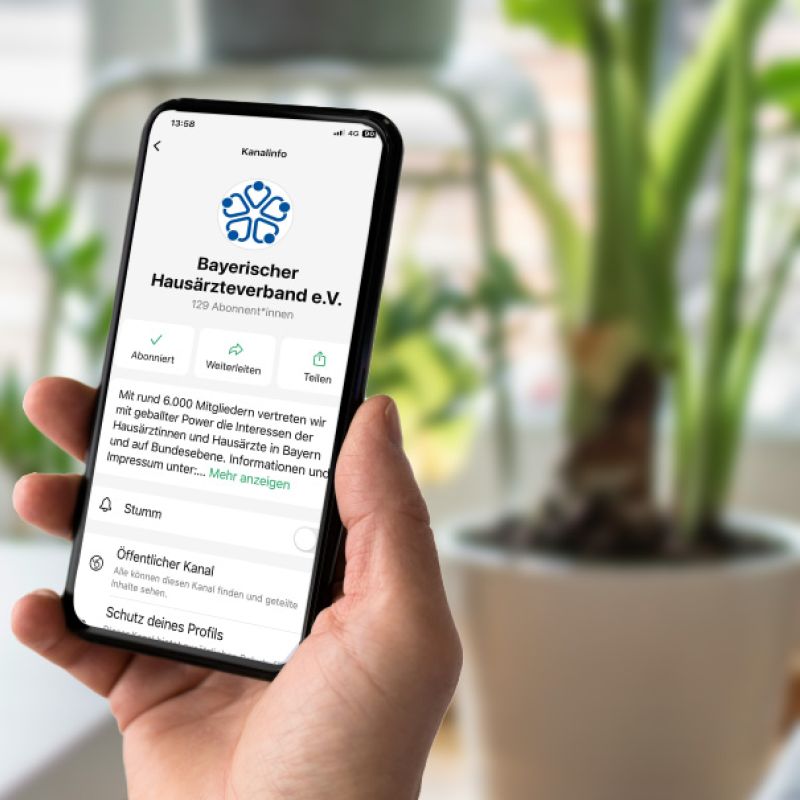 Mit einem eigenen WhatsApp-Kanal bietet der Bayerische Hausärzteverband Ihnen neben der Homepage und dem wöchentlichen Newsletter ab sofort einen weiteren Informationskanal, um wichtige berufspolitische Themen schnell und unkompliziert weiterleiten zu können.