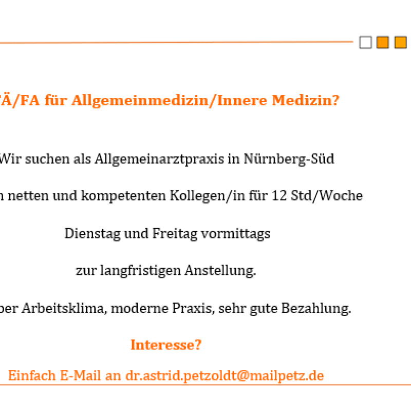 Wir suchen als Allgemeinarztpraxis in Nürnberg-Süd