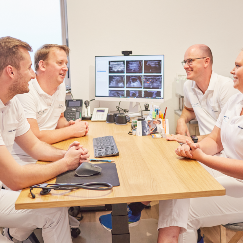 • Täglicher bilateraler fachlicher Austausch in lockerer Atmosphäre in der Praxis und auch interkollegial mit anderen Praxen und Kliniken (Fachärzte in der Region, RoMed Kliniken, Krankenhaus Agatharied, kbo Kliniken und Schön Kliniken)