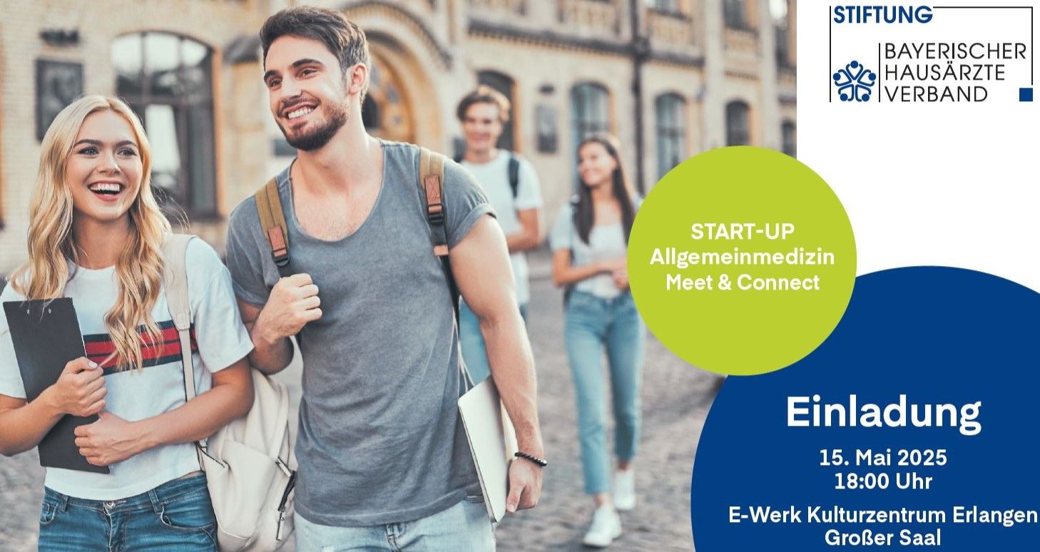 Medizinstudium – und dann? Interessante Berufsperspektiven bietet der Einstieg in eine (Hausarzt-)Praxis. Was dafür spricht, darüber können sich Medizinstudierende sowie Ärztinnen und Ärzte in Weiterbildung in der Veranstaltung "Start-up Allgemeinmedizin" des Bayerischen Hausärzteverbandes informieren. Unter dem Motto "Meet & Connect" laden wir euch zu einem Get-Together zum Semesterbeginn am Donnerstag, den 15. Mai 2025 in's E-Werk in Erlangen ein.