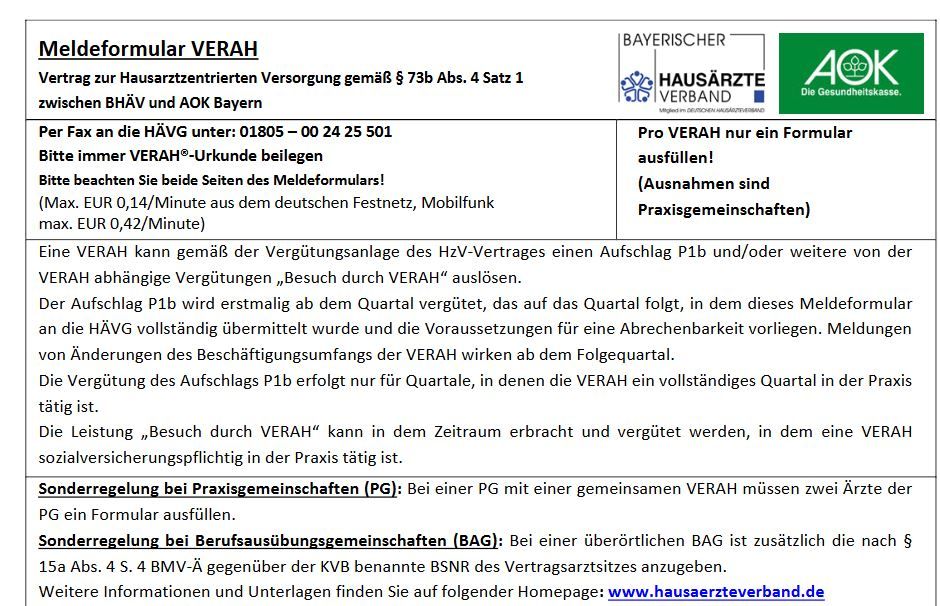 Das Meldeformular kann für die VERAH®-Meldungen aller HZV-Verträge genutzt werden.